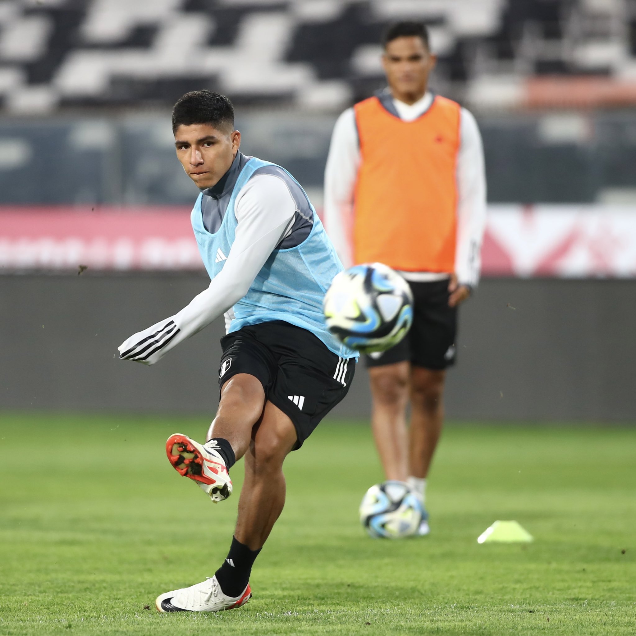 La selección peruana realizó este martes el reconocimiento de cancha del estadio Monumental de Colo Colo, donde el jueves enfrentará a Chile por las eliminatorias sudamericanas.