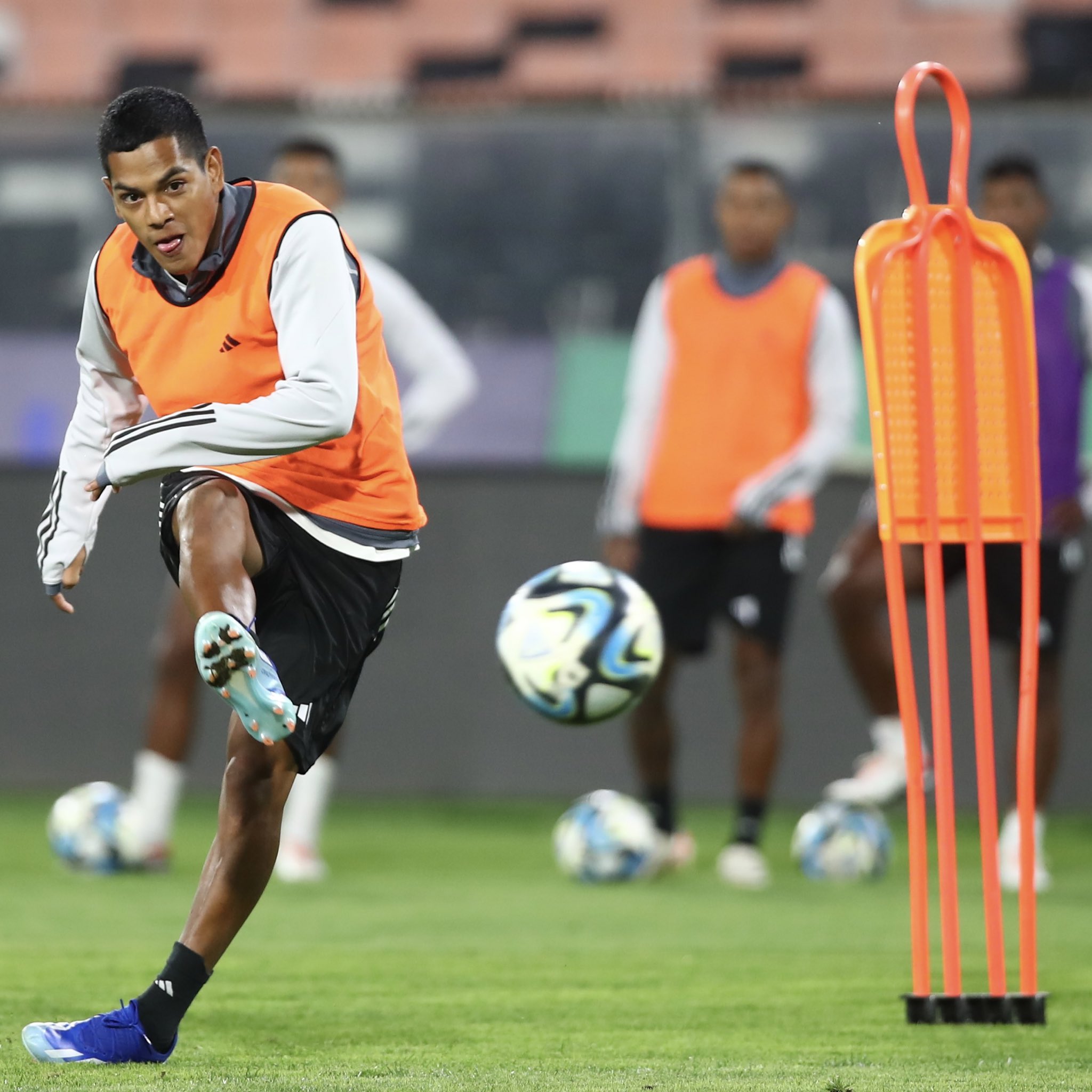 Bajo las órdenes de Juan Reynoso, los futbolistas convocados a la selección peruana entrenaron en la cancha del estadio Monumental en Santiago de Chile, que no está en el mejor estado.